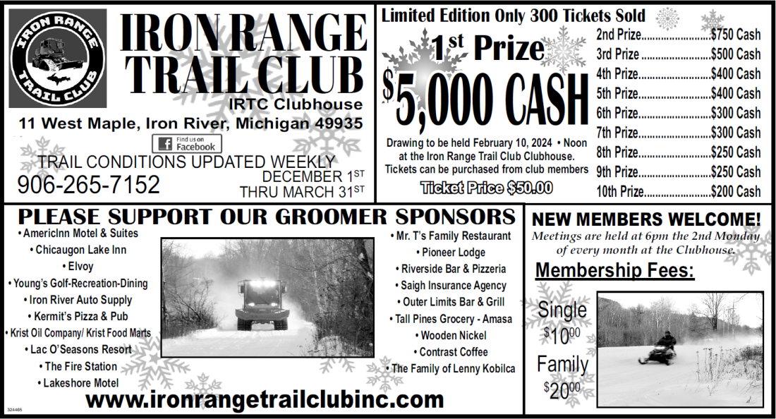© 2025 Iron Range Trail Club, 11 West Maple, Iron River, MI. (906) 265-7152